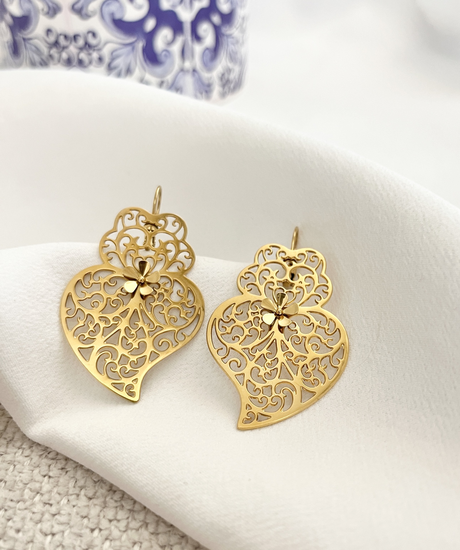 Brincos coração de Viana 15,00 € Desconto de %. Partilhar O produto encontra-se sem stock. Brincos grandes - Coração de Viana Material: aço inoxidável Tamanho: +/- 4,5cm