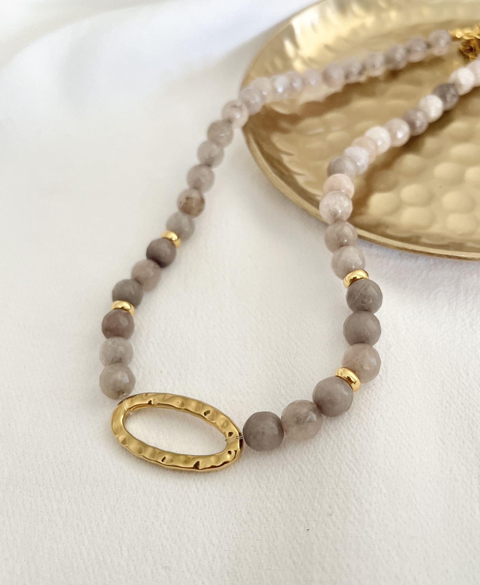 Colar pedras naturais 17,00 € Desconto de %. Partilhar O produto encontra-se sem stock. Colar pedras naturais e peça dourada Material: aço inoxidável