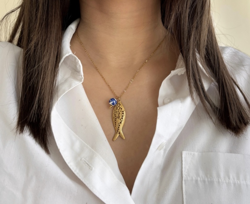 Fio Sardinha 14,00 € Desconto de %. Partilhar Comprar Contactar Fio Sardinha com peça de cerâmica azulMaterial: aço inoxidável